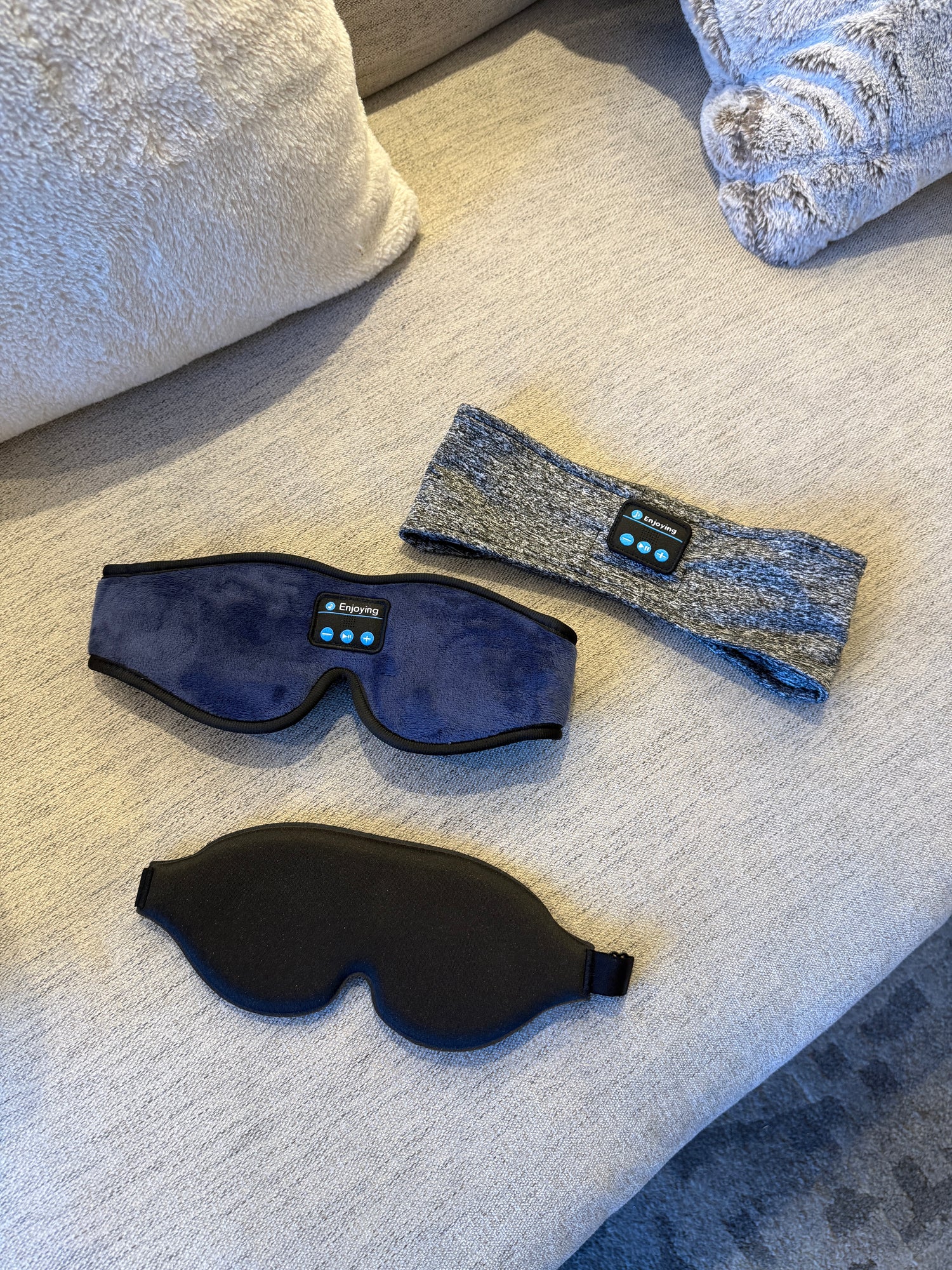 Wireless Bluetooth Sleep Mask — Blackout Eye Mask with Built-In Stereo Audio, Adjustable Comfort Fit
